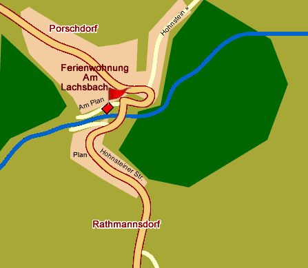 Anfahrt von Dresden auf der A17 bis Abfahrt Pirna und weiter in Richtung Pirna Zentrum. Sie kommen direkt auf die B172 und fahren weiter über Königstein in Richtung Bad Schandau. In Bad Schandau auf der Abfahrt von der Elbbrücke biegen Sie rechts ab von der Hauptstraße in Richtung Rathmannsdorf - Hohnstein. Sie fahren bis zum Ortsausgang Rathmannsdorf und dann über eine Brücke und biegen danach links ab und kommen zu unserer Ferienwohnung. |